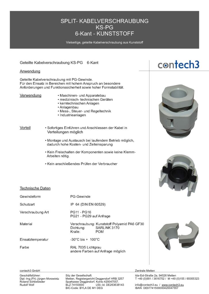Vielseitige, geteilte 6-Kant Kabelverschraubung aus Kunststoff