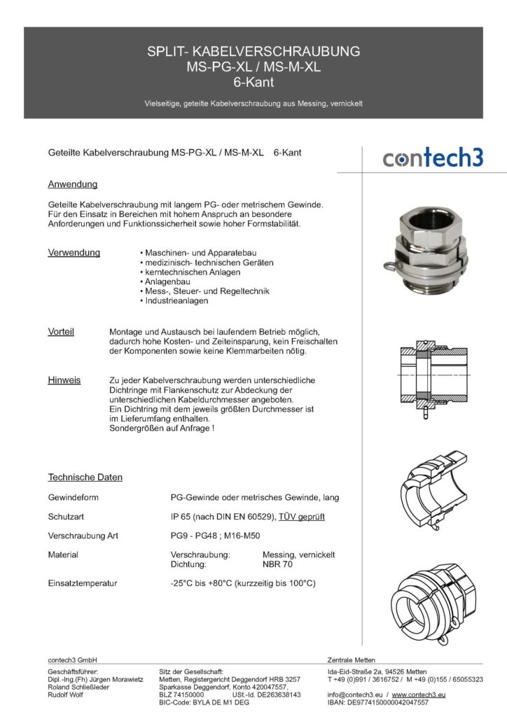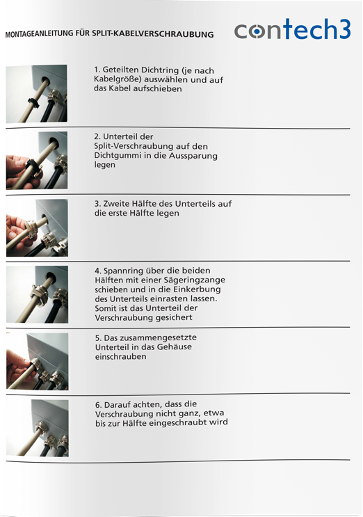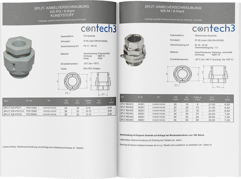 Geteilte Kabelverschraubung mit PG- oder metrischem Gewinde. Für den Einsatz in Bereichen mit hohem Anspruch an besondere Anforderungen und Funktionssicherheit sowie hoher Formstabilität.